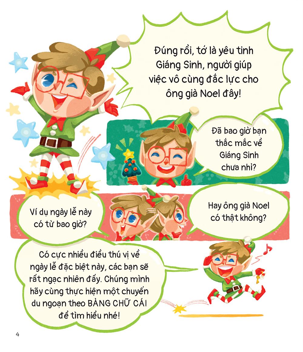 “Tất tần tật về Giáng Sinh” sắp xếp các khái niệm, hình ảnh, sự kiện và từ vựng quen thuộc theo thứ tự bảng chữ cái, giúp các bé dễ dàng ghi nhớ và khám phá từng điều thú vị một cách độc lập.