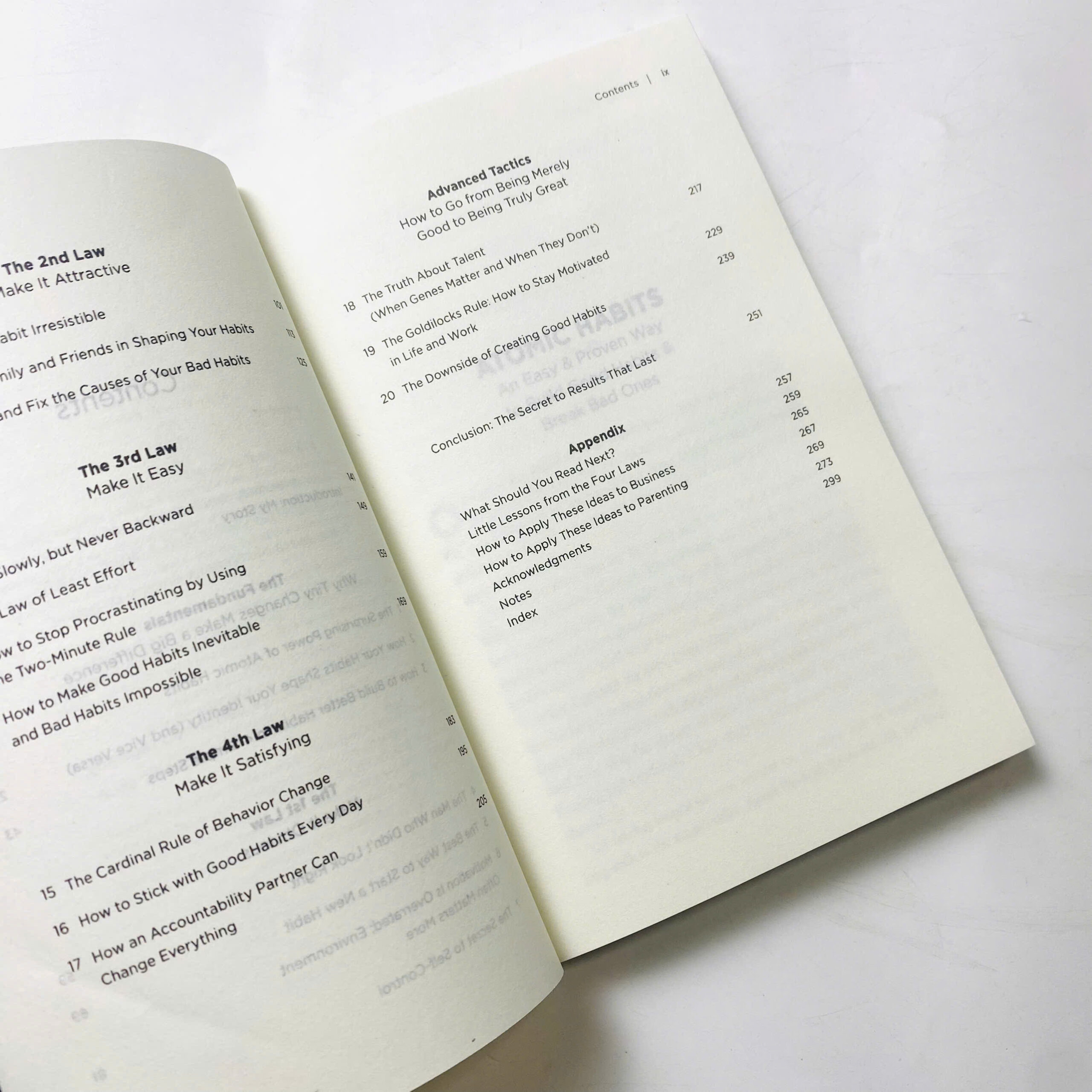Mỗi quy luật đều đi kèm ví dụ cụ thể: từ cách sắp xếp không gian làm việc, quản lý điện thoại, đến chiến lược “xếp chồng thói quen” (habit stacking) giúp bạn bắt đầu ngay hôm nay.