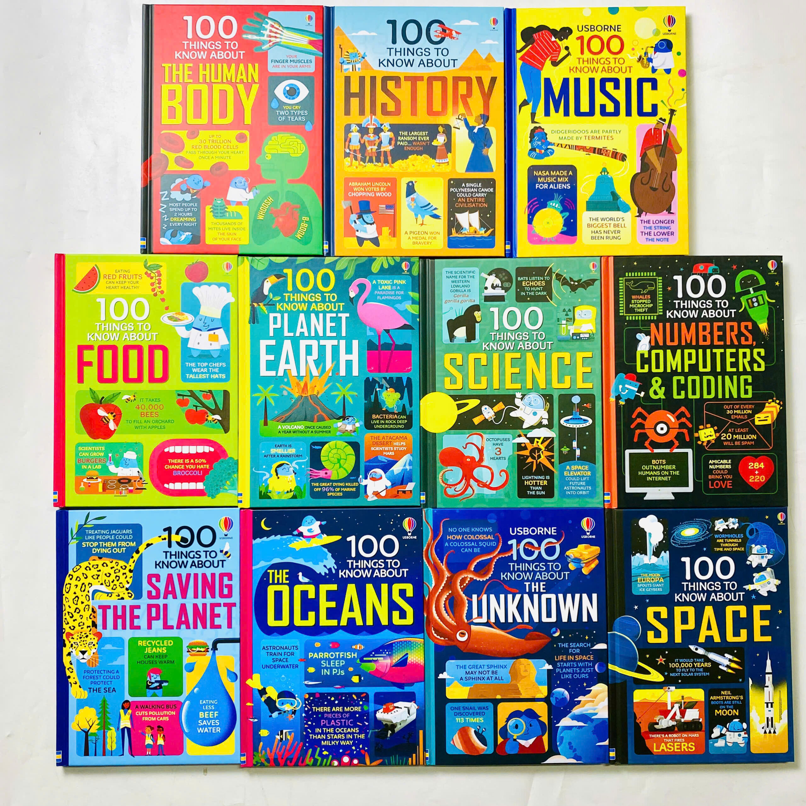 Bé đam mê khoa học, khám phá về tự nhiên vũ trụ thì bố mẹ đừng bỏ qua bộ sách bìa cứng tuyệt đẹp 100 Things To Know About đến từ Nhà Xuất Bản Usborne cực kì nổi tiếng này nhé. Bộ sách khoa học cực kì thu hút các bộ nhỏ bởi bao gồm 10 chủ đề thú vị nhất về cuộc sống tự nhiên, vũ trụ. Bộ sách tiếng Anh khoa học 100 things cũng sẽ là một thử thách khó nhằn trong con đường chinh phục và cải thiện kĩ năng tiếng Anh của con
