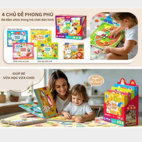 Đây là bộ combo 4 hộp bóc dán đa chủ đề, giúp trẻ vừa học, vừa tương tác, vừa khám phá thế giới xung quanh qua hàng trăm hình ảnh sinh động.