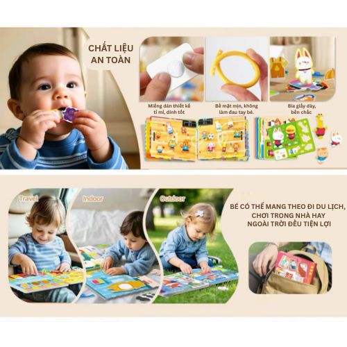 Mỗi chủ đề đều được minh họa bằng sticker dày, bền và có thể tái sử dụng, giúp bé vừa chơi, vừa rèn kỹ năng tư duy và phản xạ tự nhiên.
