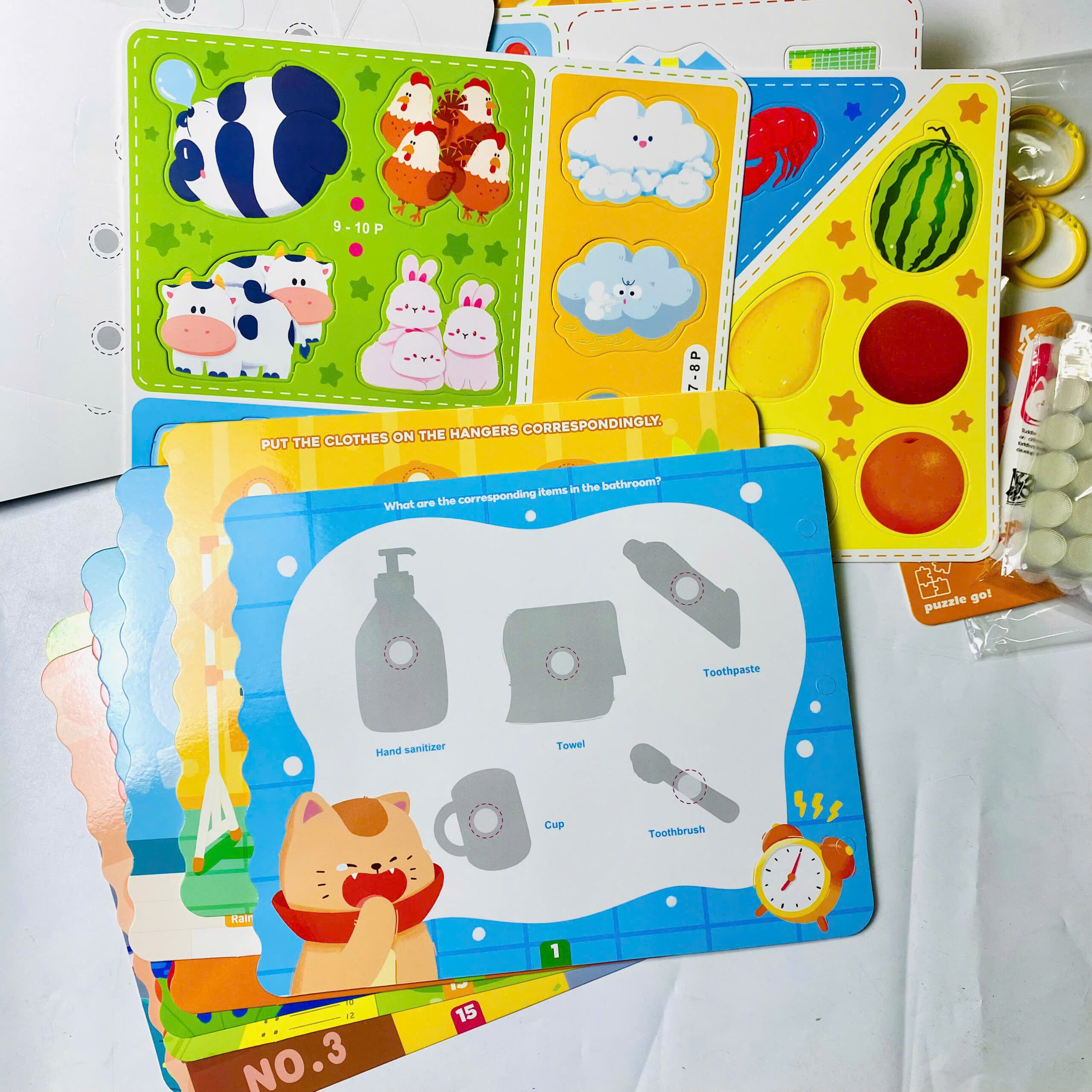 Mỗi trang chơi là một thử thách nhỏ: bé phải quan sát, tìm vị trí chính xác và dán sticker tương ứng.