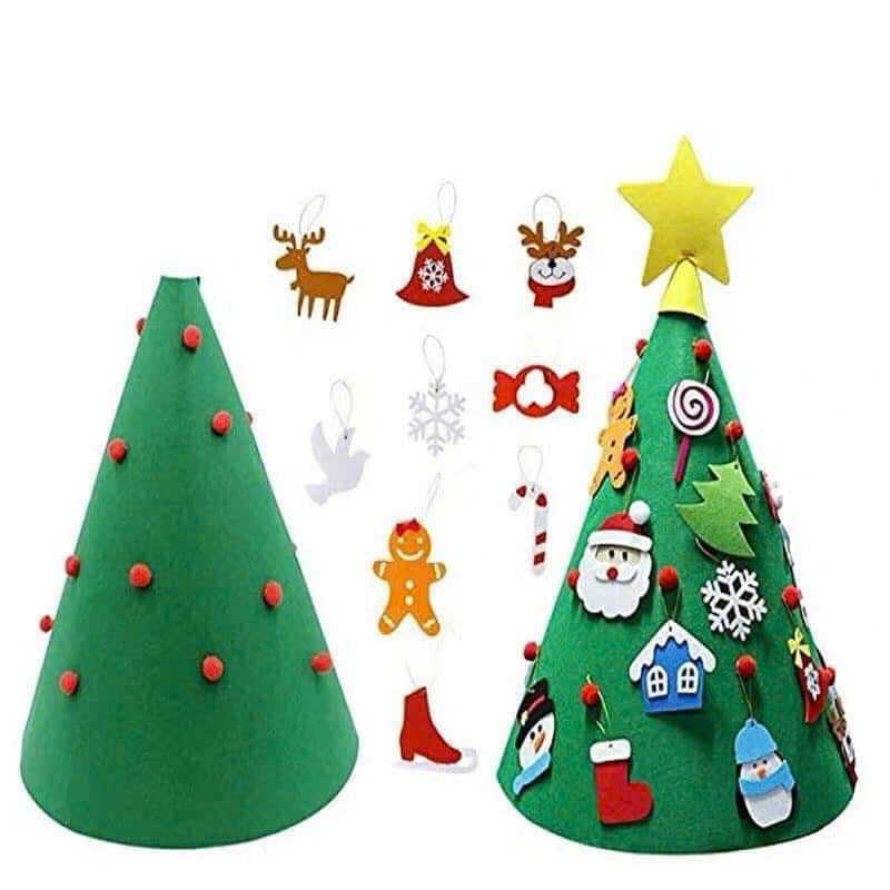 Mỗi phụ kiện trang trí đều làm bằng vải dạ dày, màu sắc nổi bật, dễ cầm nắm. Bé có thể thay đổi vị trí liên tục mà không làm hỏng bề mặt cây.