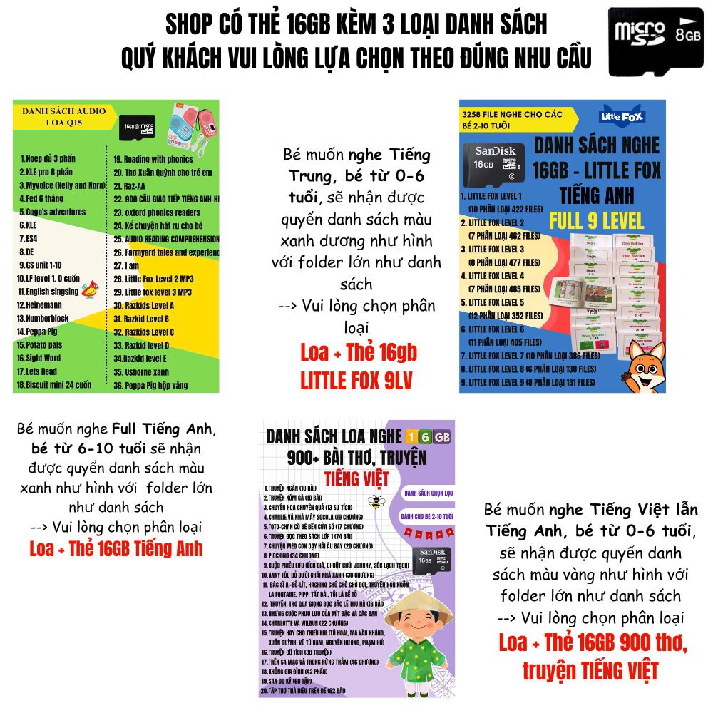 Đặt mua Combo Loa Nogo Q15 kèm thẻ nhớ 16GB ngay hôm nay tại LaLaBookshop!