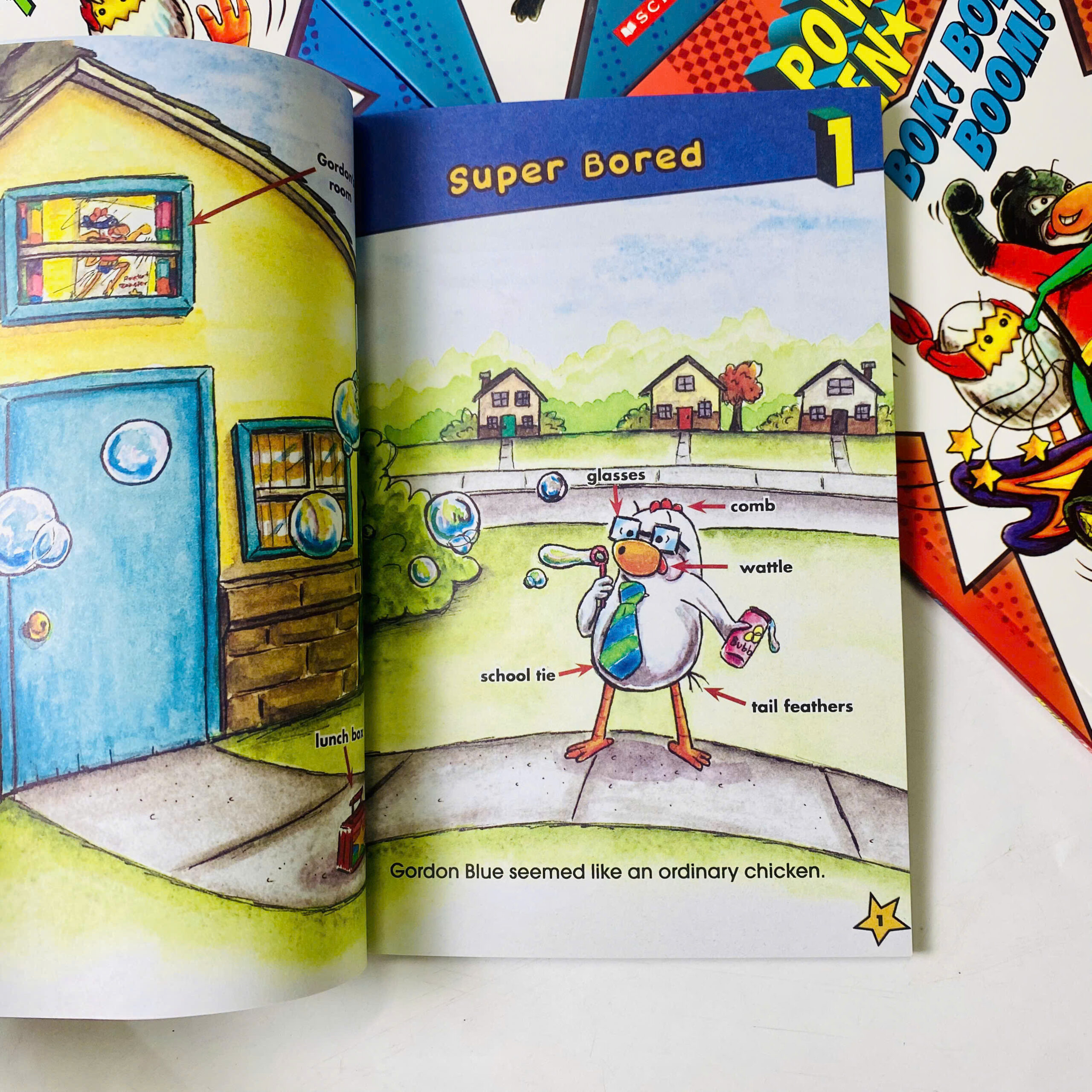 Nhân vật chính là một chú gà siêu anh hùng với phong cách hơi “lố”, hành động nhanh, tình huống hài hước đúng gu trẻ 6–9 tuổi. Bé đọc để giải trí, nhưng trong quá trình đó vẫn làm quen cấu trúc câu, hội thoại và từ vựng tiếng Anh một cách tự nhiên.