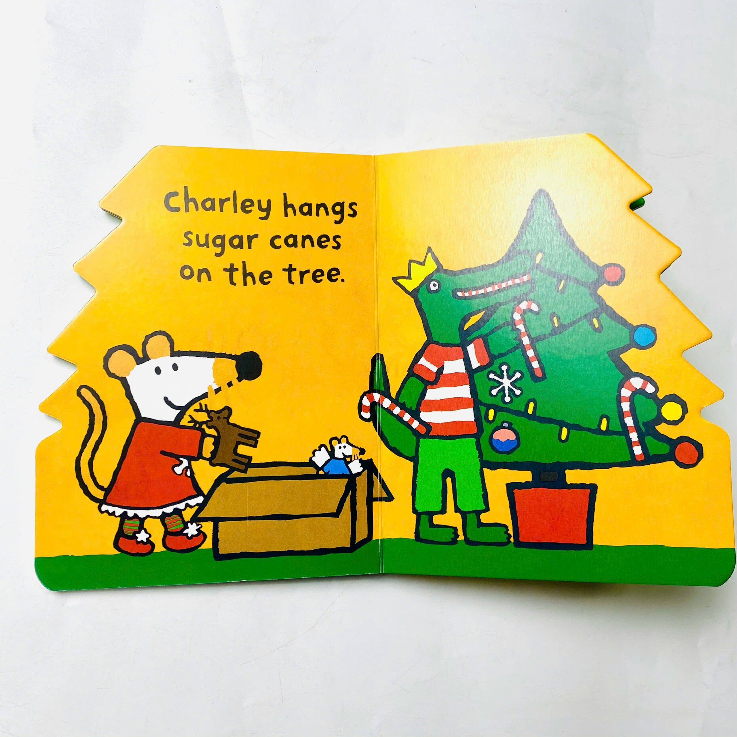 Điểm đặc biệt khiến Maisy’s Christmas Tree nổi bật là phần bìa được cắt theo dáng cây thông, tạo cảm giác sống động như một món quà Giáng sinh thực thụ. Bé chỉ cần nhìn là muốn cầm ngay để khám phá.