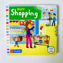 [SÁCH NHẬP KHẨU] Sách Bìa Cứng Busy Shopping – Bé khám phá thế giới mua sắm vui nhộn cùng sách kéo trượt