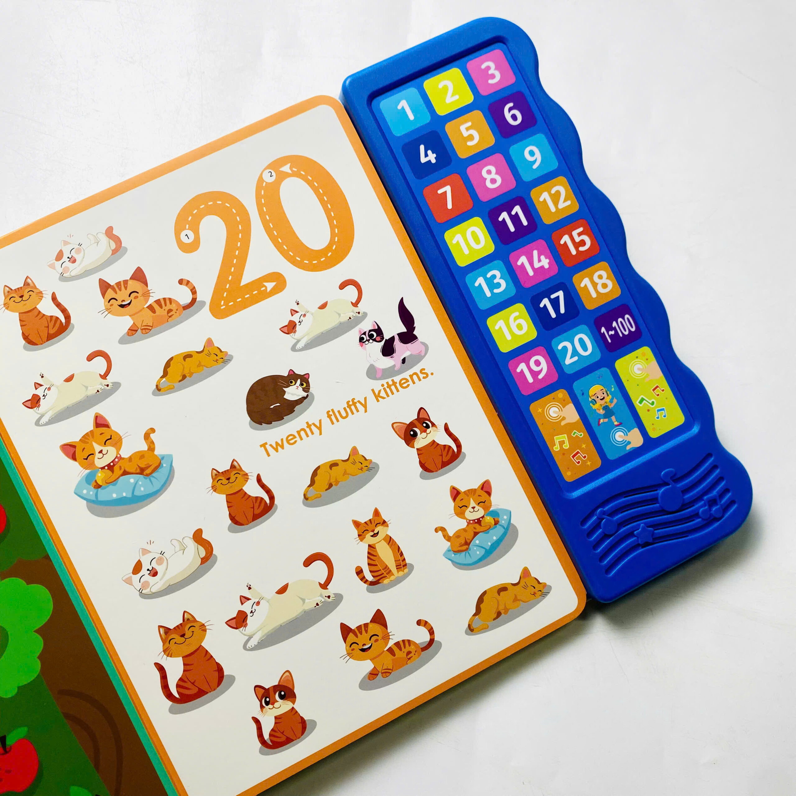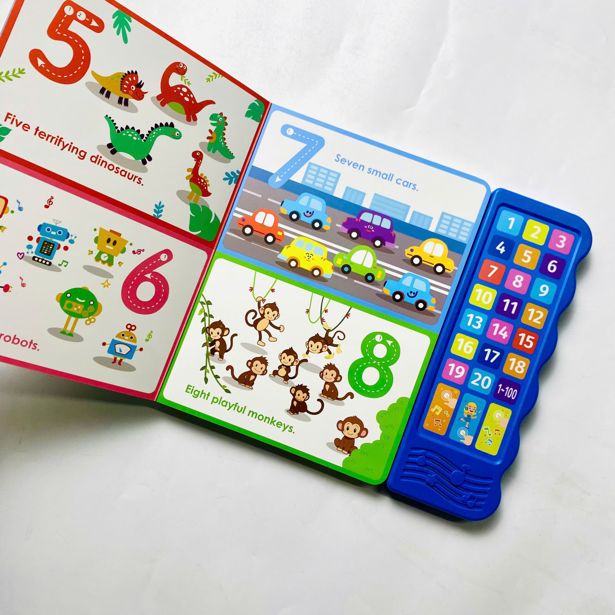 Bảng nút bấm được đặt bên hông sách, kích thước lớn, màu sắc rõ ràng. Bé chỉ cần một thao tác đơn giản là bấm số – nghe âm thanh, từ đó rèn luyện: