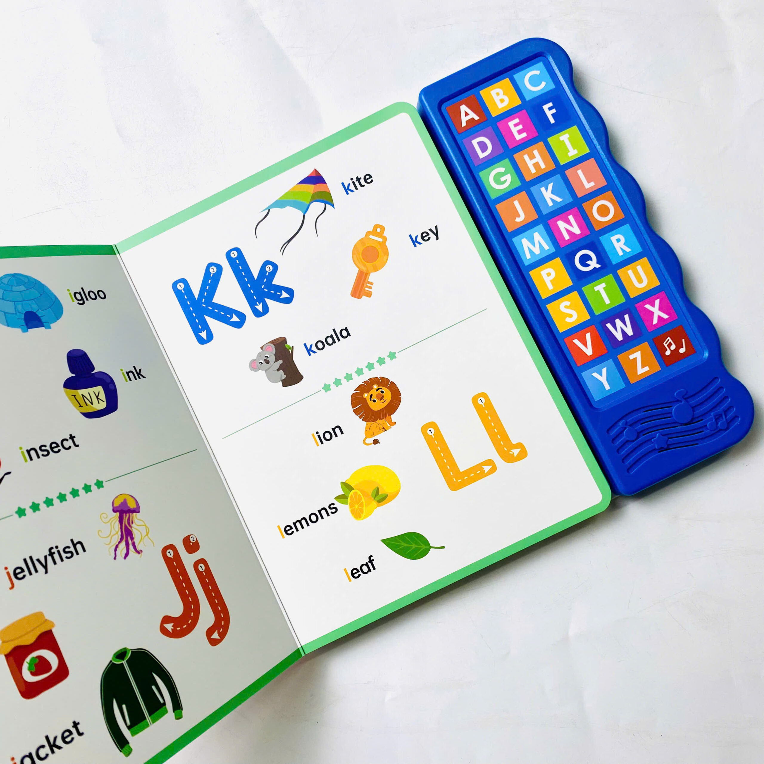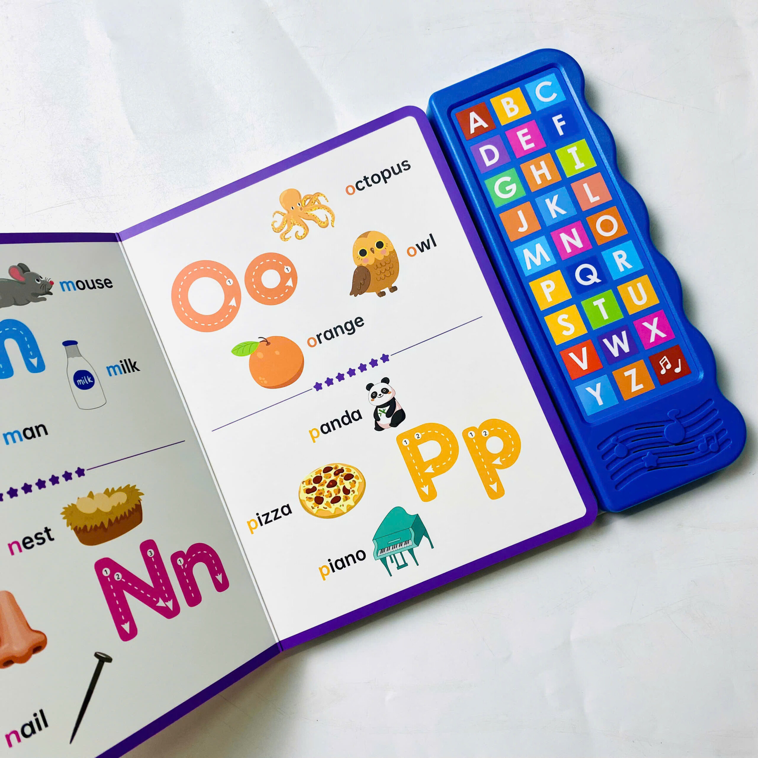 Điểm khiến Let’s Learn ABCs “ghi điểm” mạnh với phụ huynh chính là bảng nút âm thanh tích hợp sẵn bên cạnh sách. Các nút được thiết kế to, nhạy, vừa tay trẻ nhỏ, giúp bé dễ dàng thao tác ngay cả khi mới tập cầm nắm.