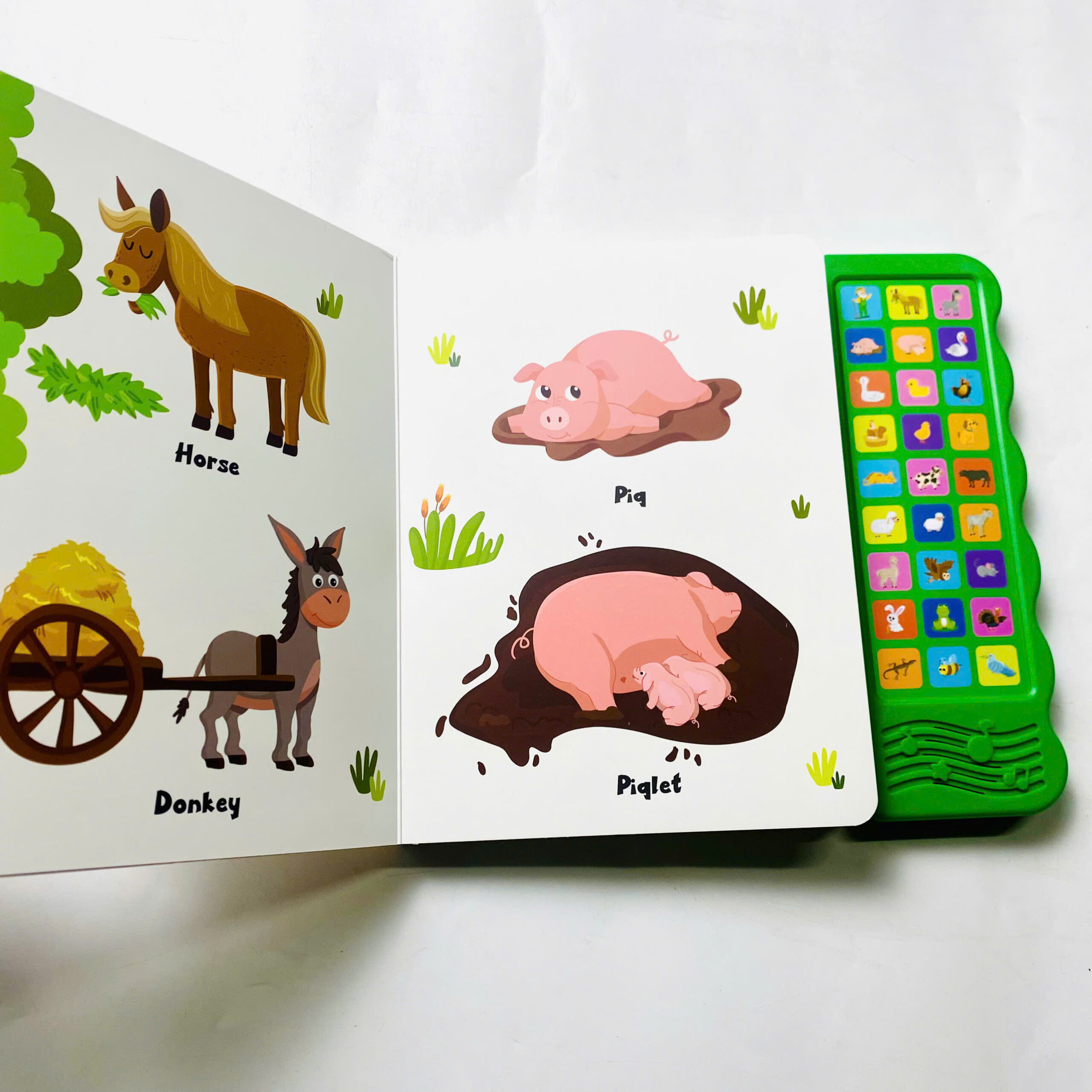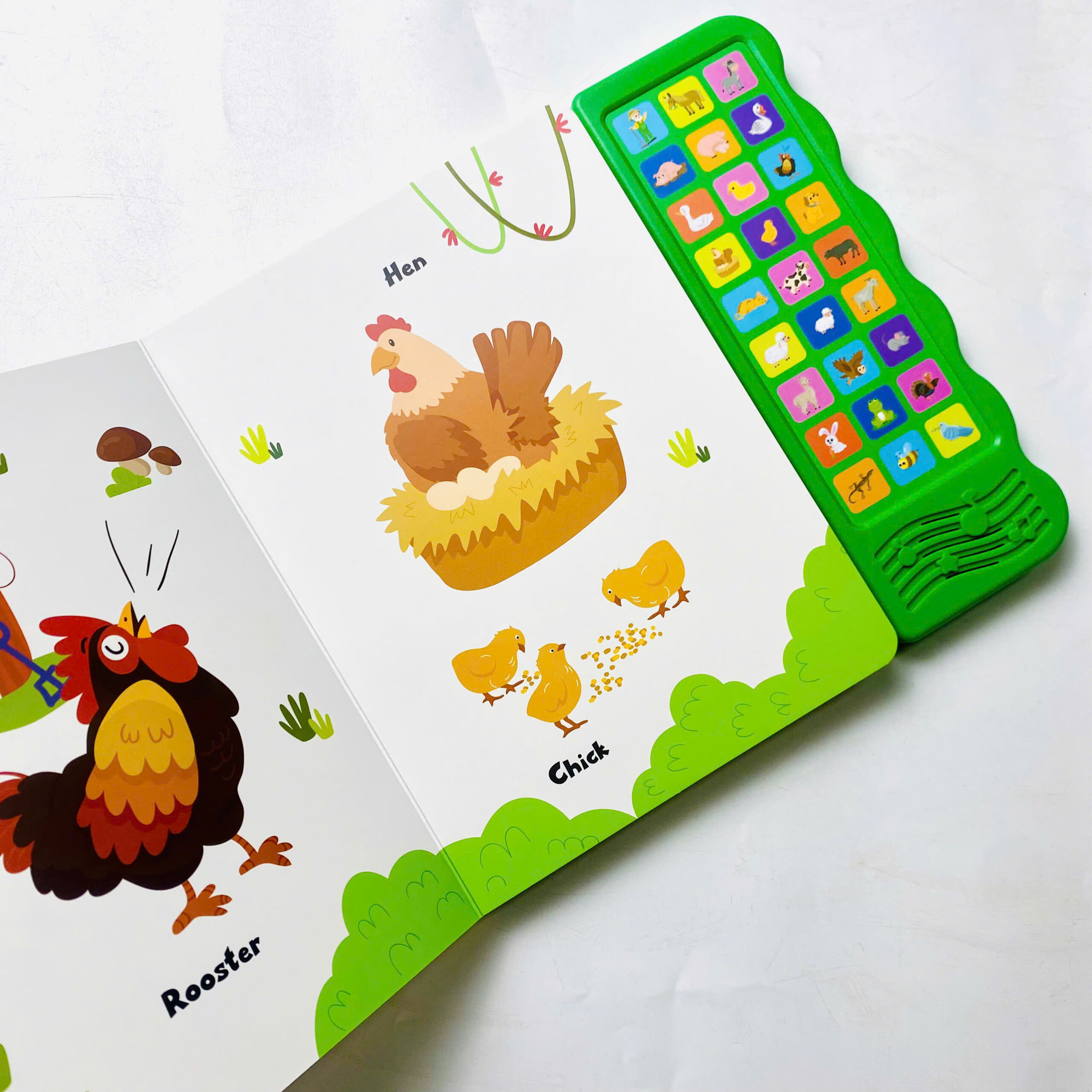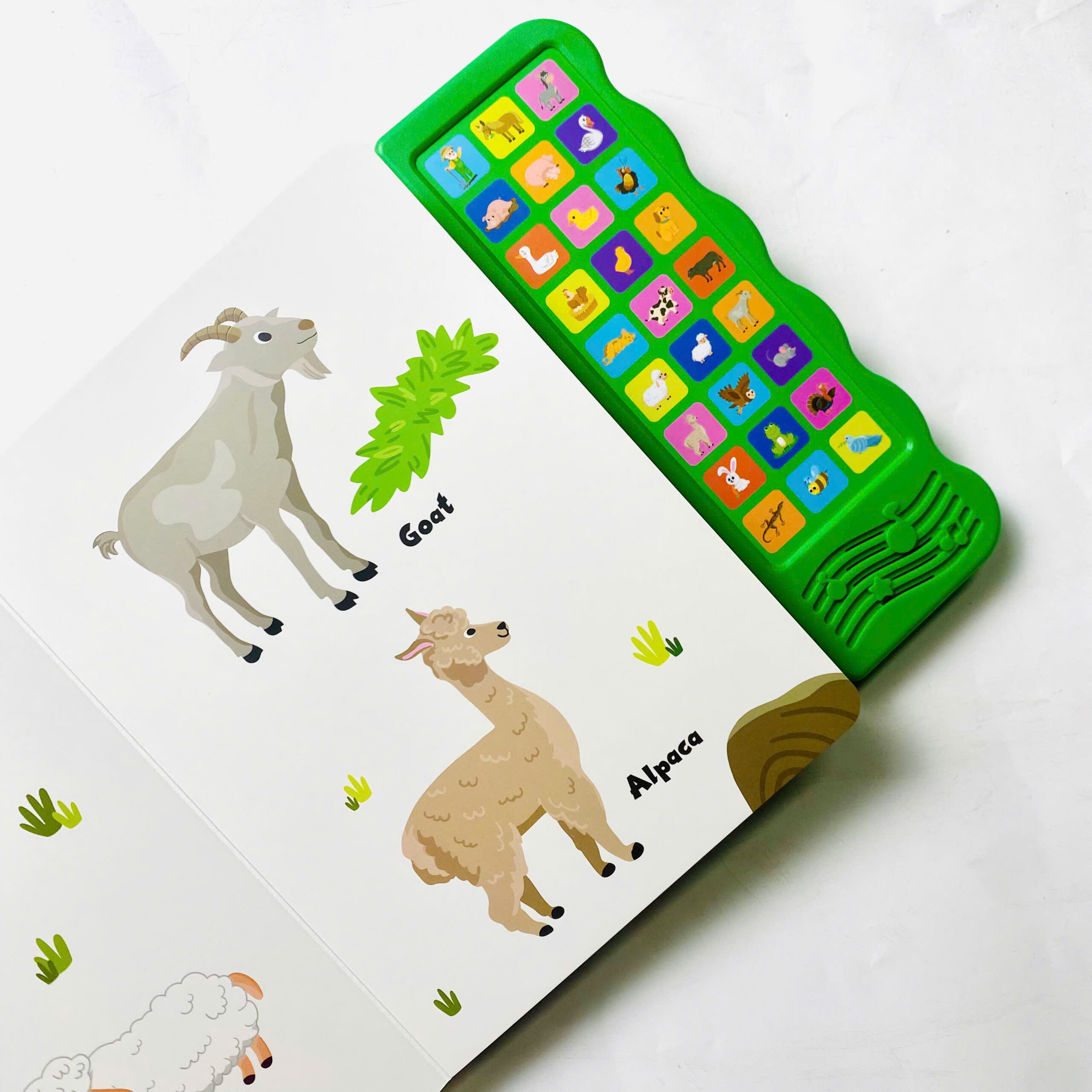 Let’s Learn Farm Animals chính là một trong những cuốn sách âm thanh được lựa chọn nhiều nhất cho giai đoạn đầu đời, giúp bé làm quen với thế giới động vật nông trại bằng cách bấm – nghe – bắt chước – nói theo.