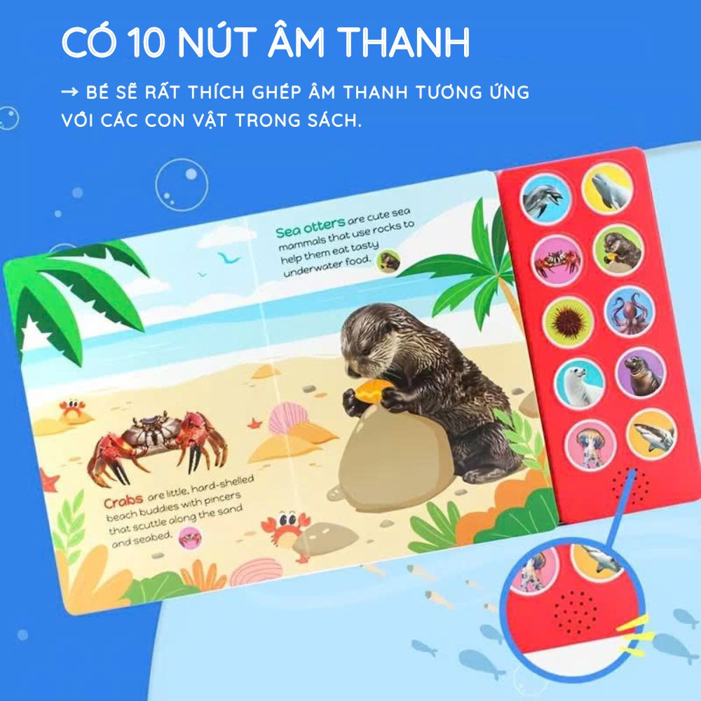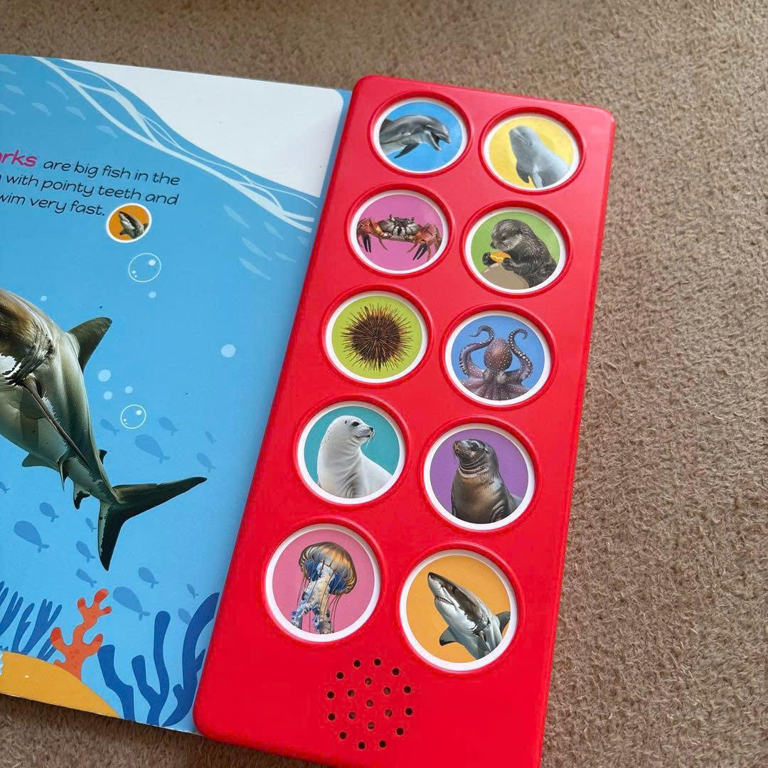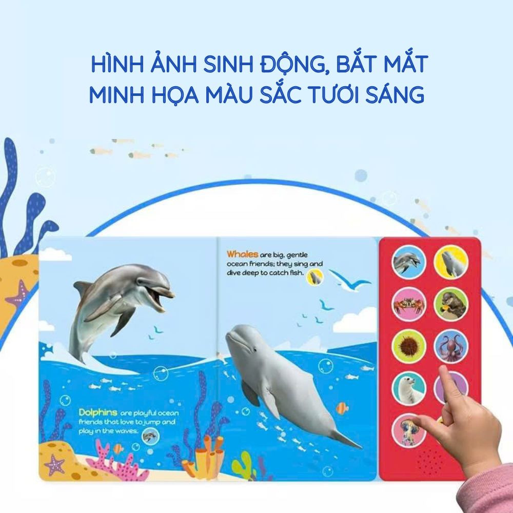 Whispers of the Sea là sách âm thanh 10 nút, mỗi nút tương ứng với một sinh vật biển. Thiết kế này rất phù hợp với trẻ nhỏ vì: