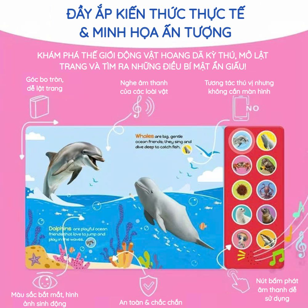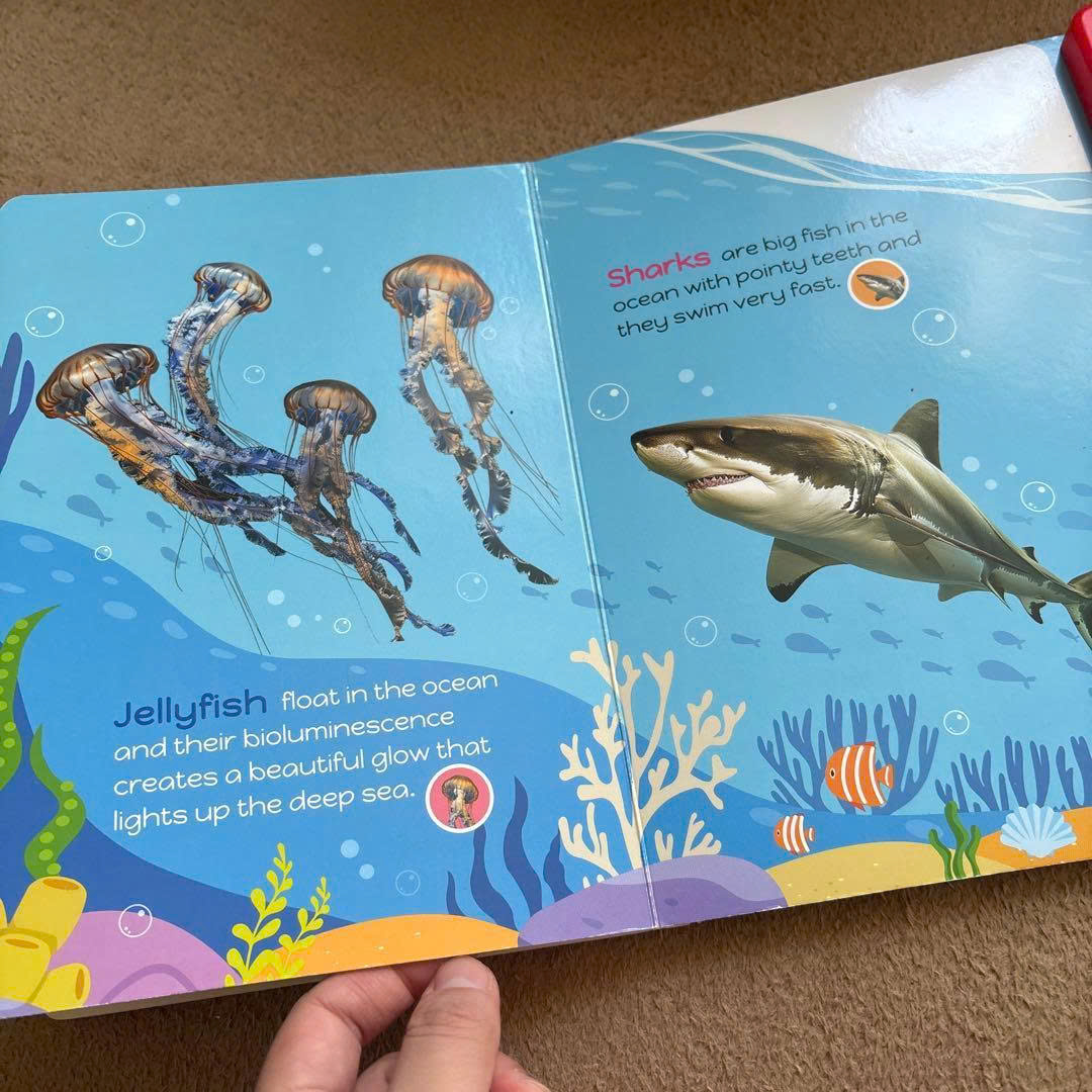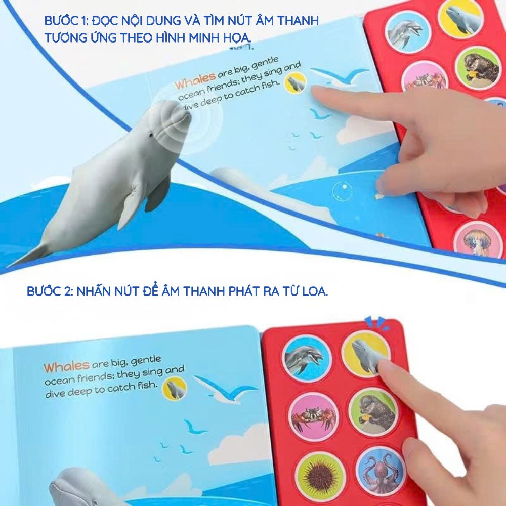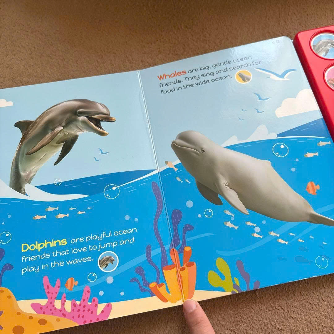 Whispers of the Sea là sách âm thanh 10 nút, mỗi nút tương ứng với một sinh vật biển. Thiết kế này rất phù hợp với trẻ nhỏ vì: