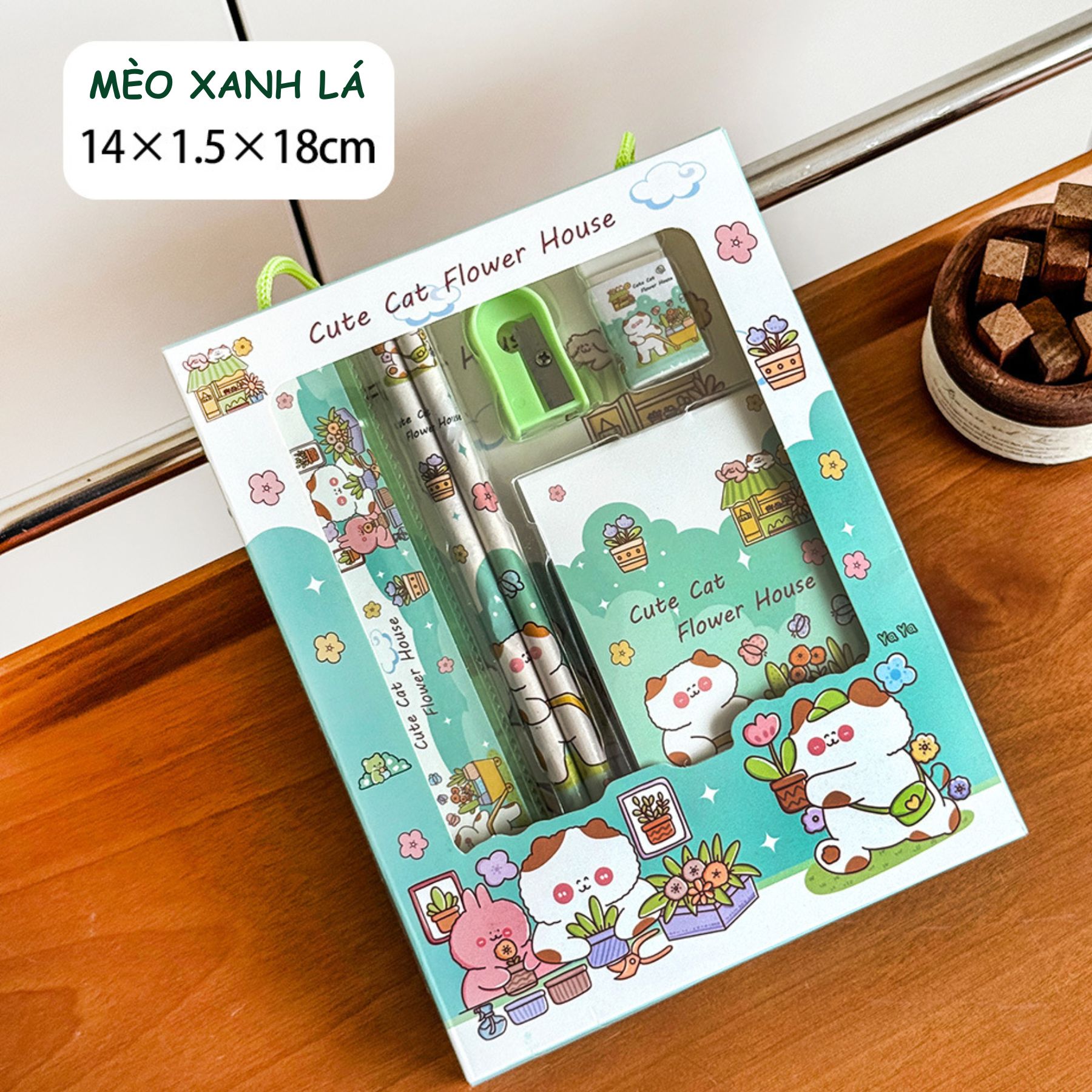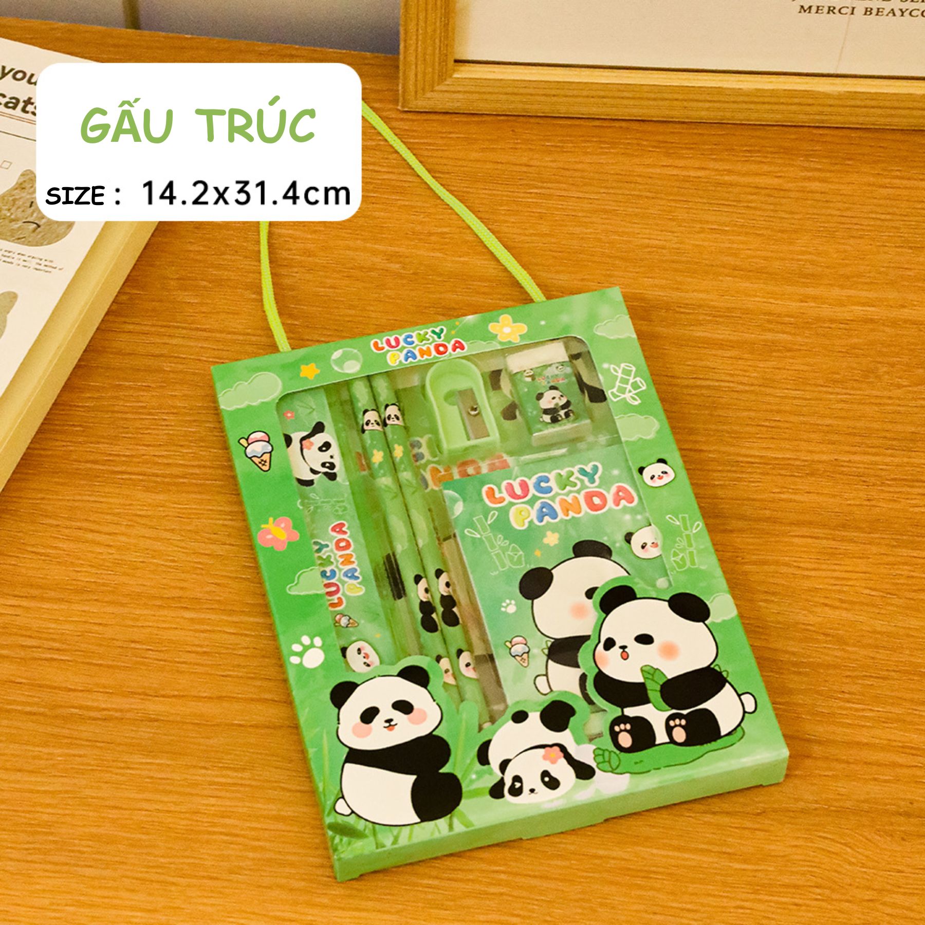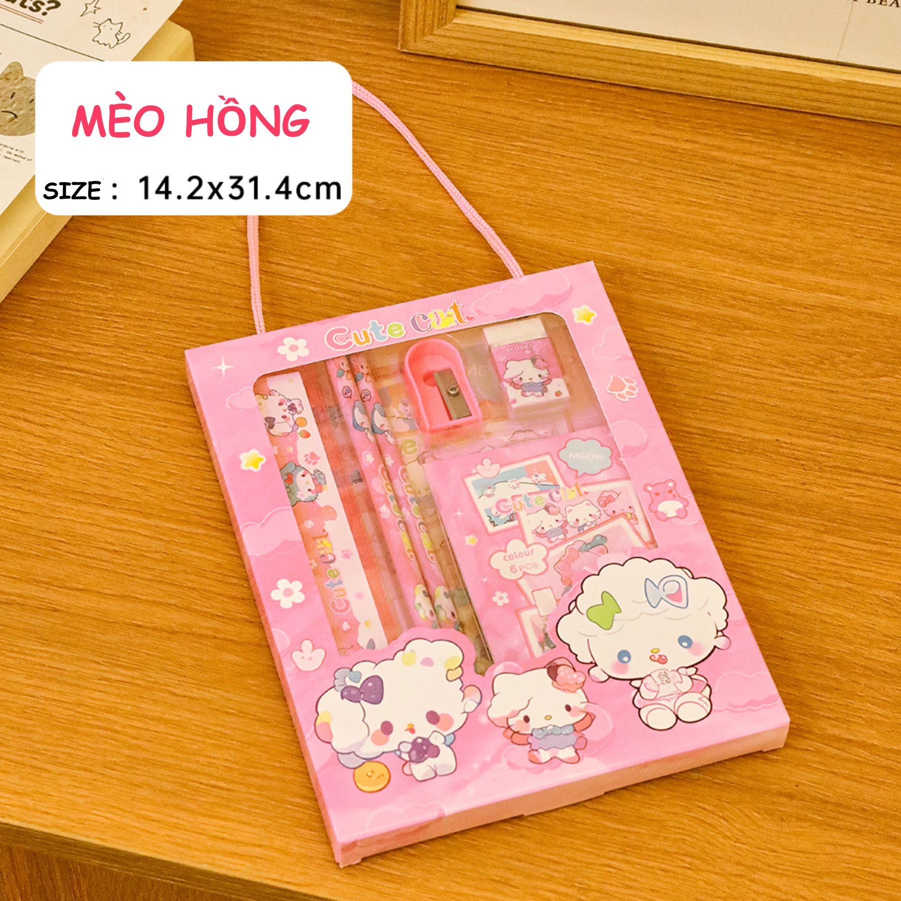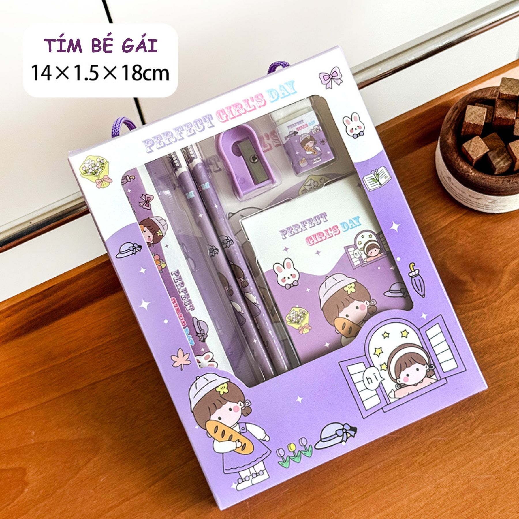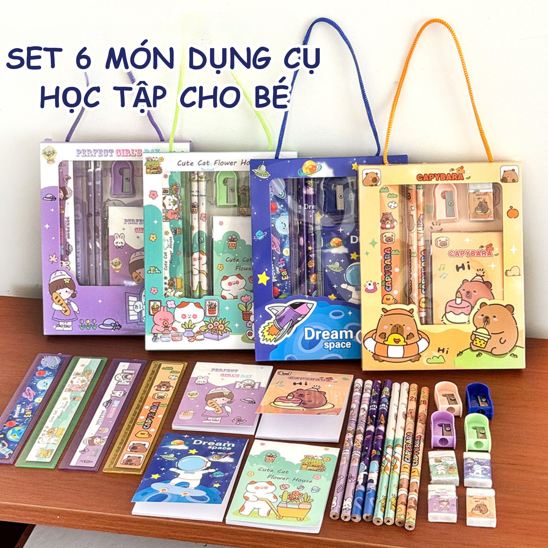 Set 6 Món Dụng Cụ Học Tập Dễ Thương Hoạt Hình – Hộp Quà Văn Phòng Phẩm Xinh Xắn Cho Bé & Học Sinh