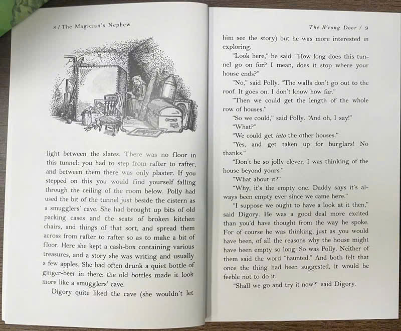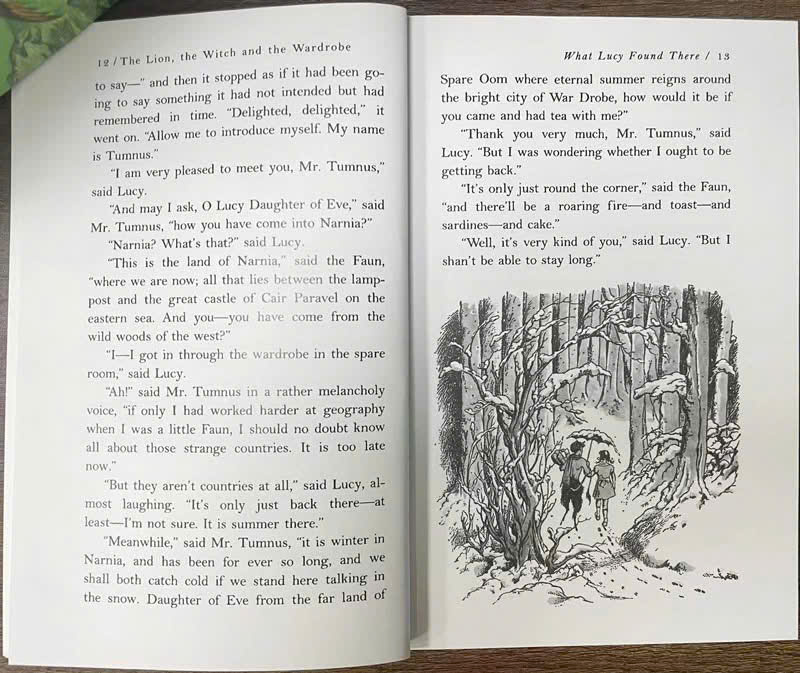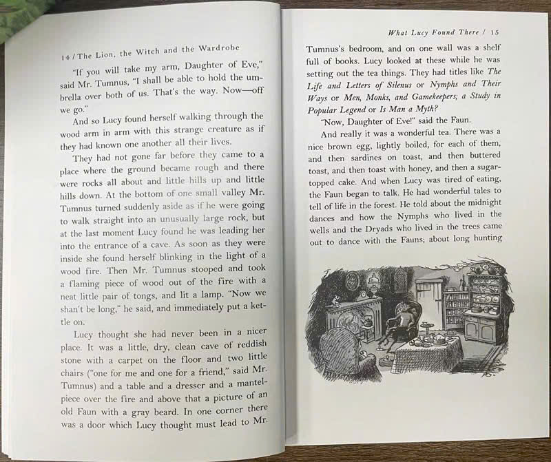 Thứ ba, ngôn ngữ chuẩn mực – lý tưởng để luyện đọc tiếng Anh: Văn phong của C. S. Lewis giàu hình ảnh nhưng không quá khó, rất phù hợp cho trẻ từ 8–14 tuổi làm quen với chapter book. Trẻ đọc vì tò mò câu chuyện, và vô tình nâng cao vốn từ, khả năng suy luận, đọc hiểu dài hơi.