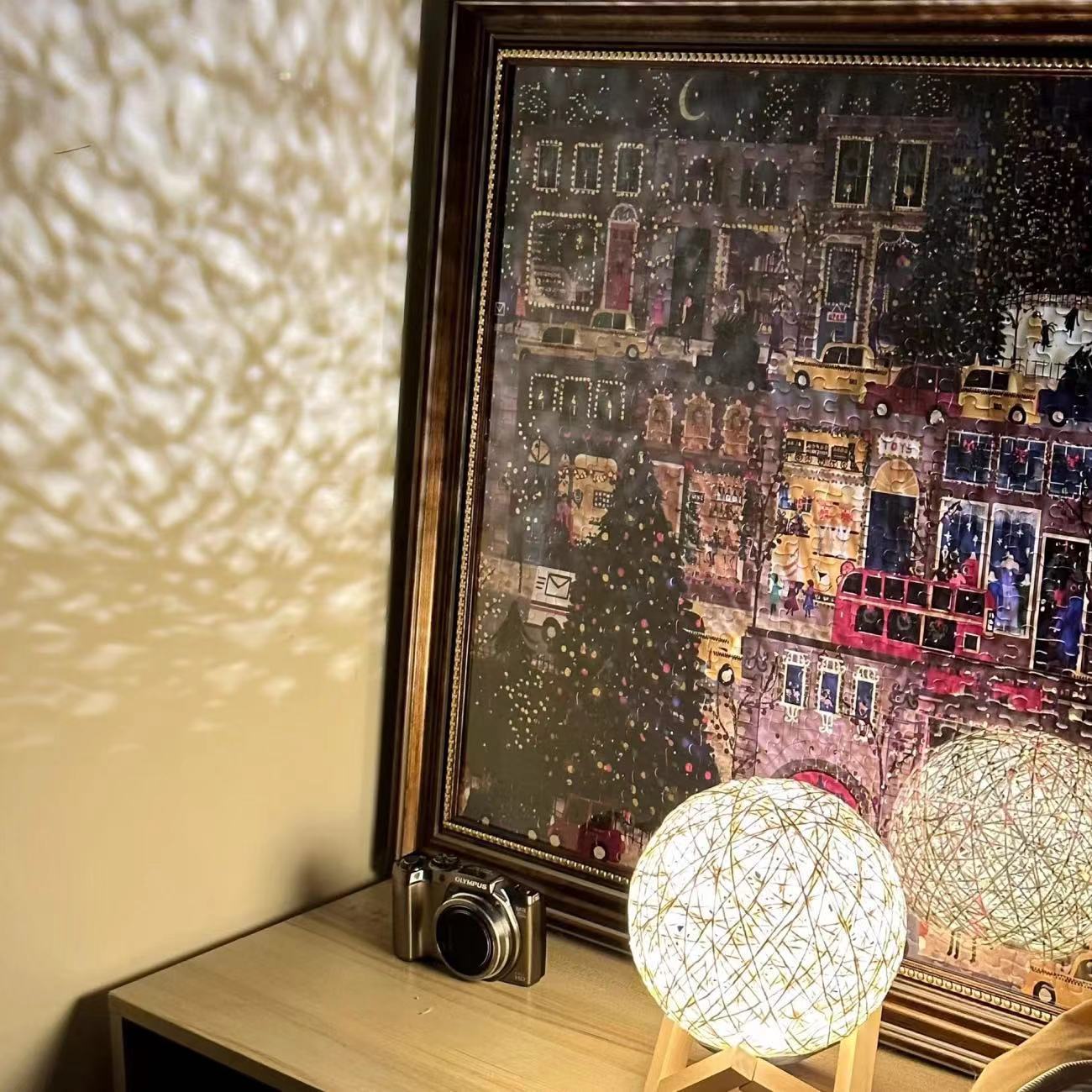 - 🧩 Mỗi chi tiết – ánh đèn vàng, cây thông, khung cửa sổ, người qua đường – đều được in rõ nét và sắc sảo.