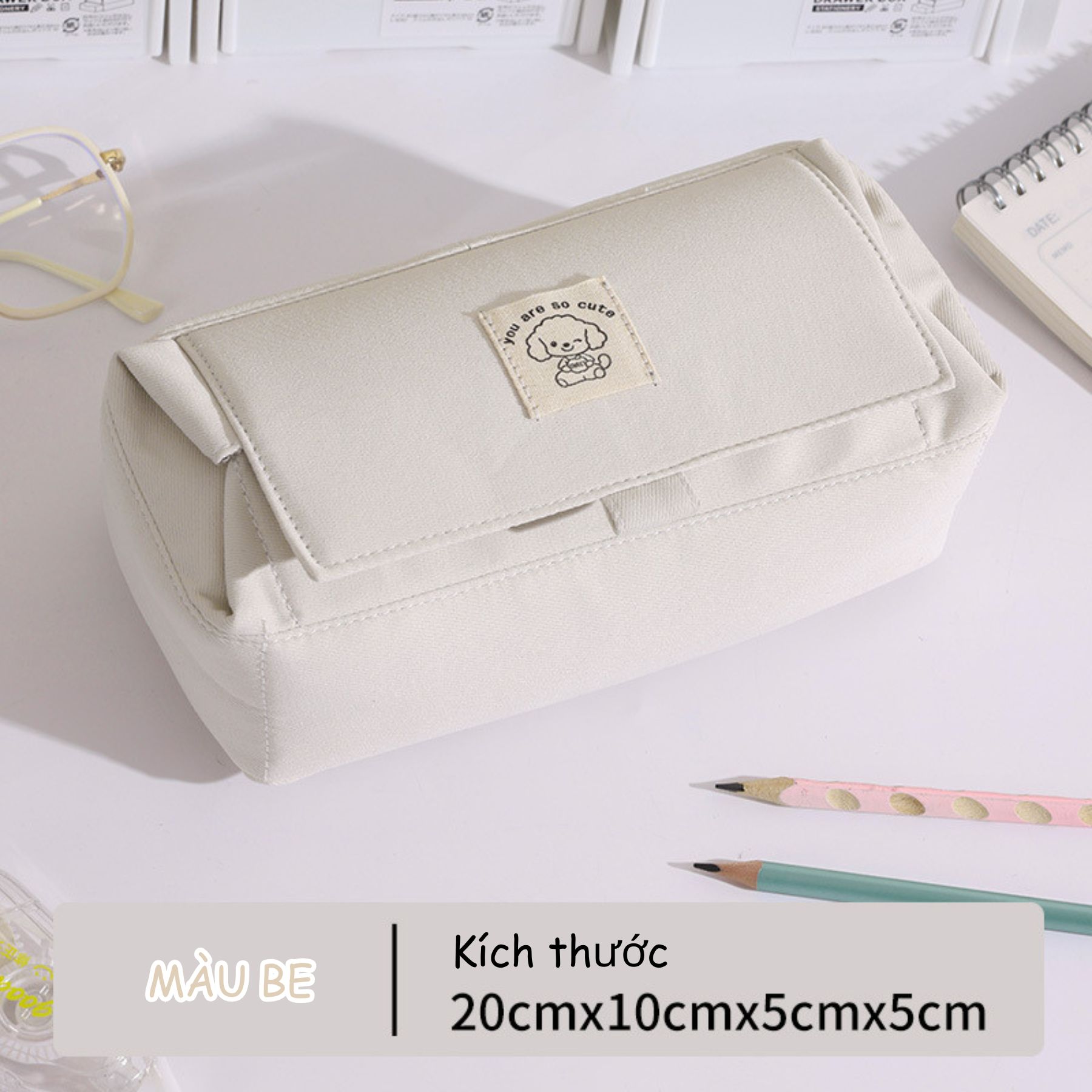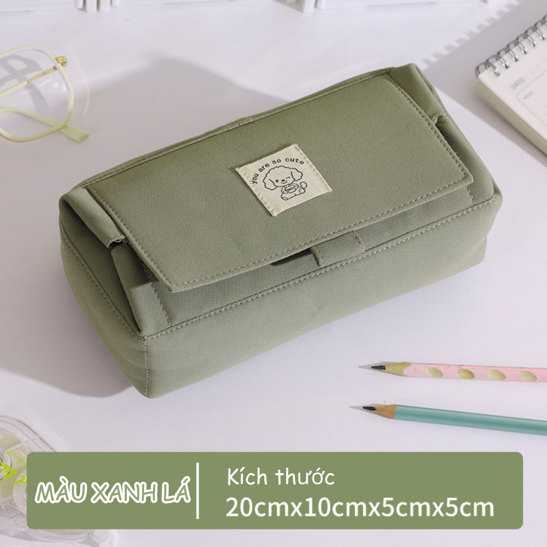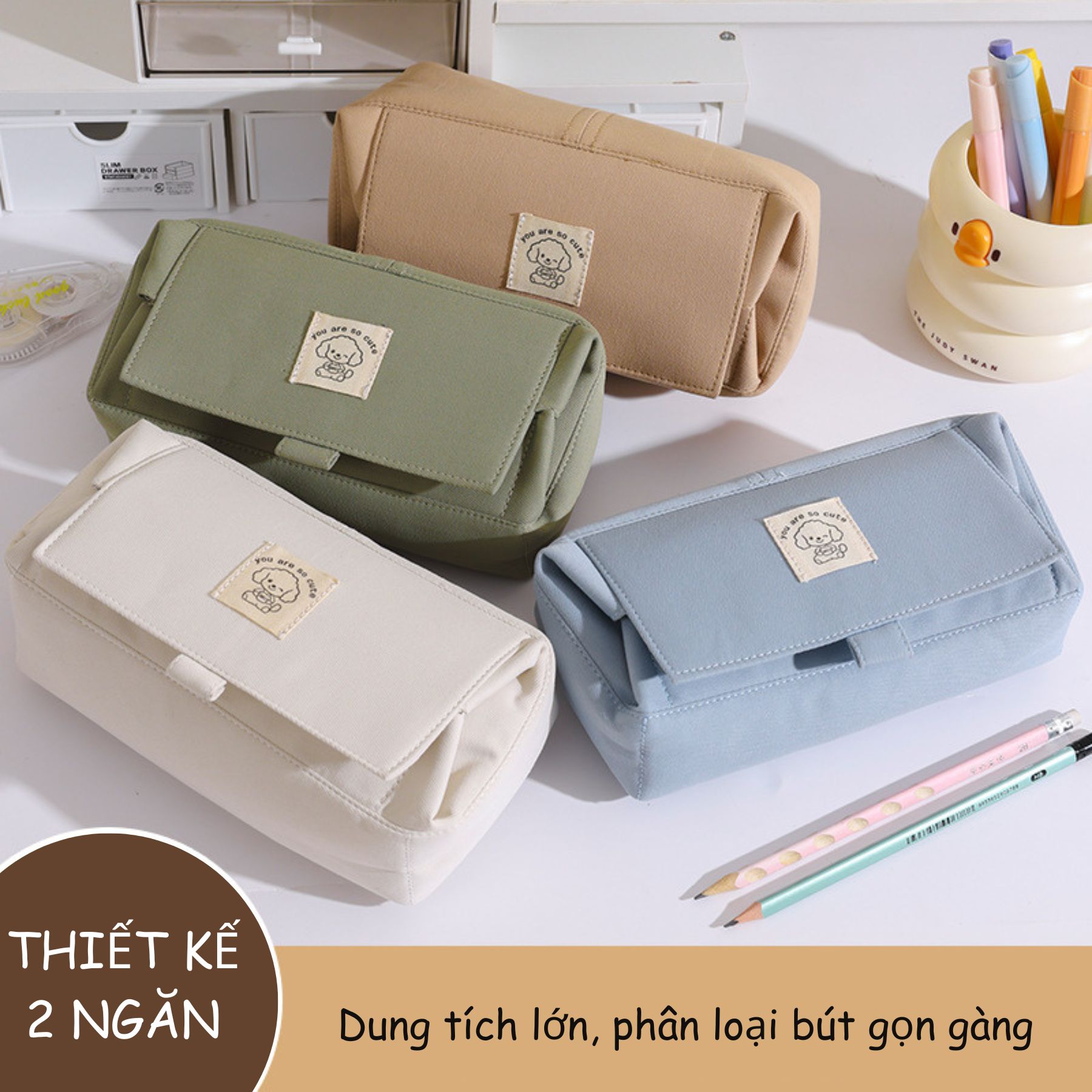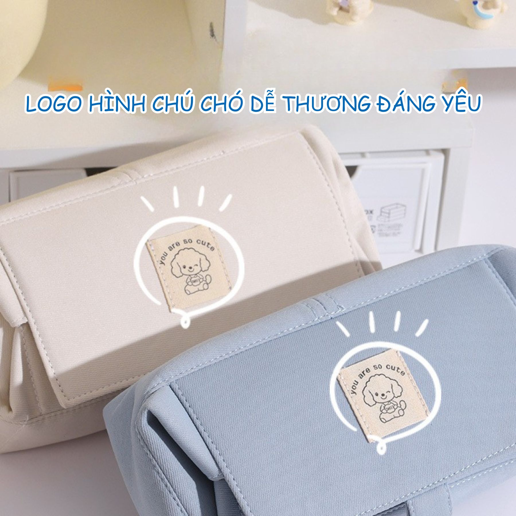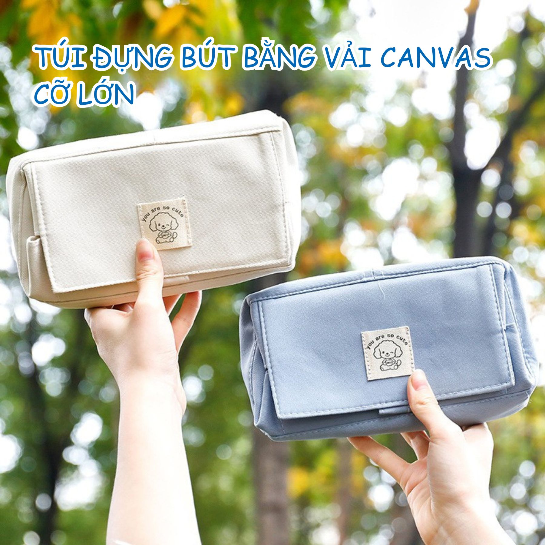 Túi Đựng Bút Vải Canvas Cỡ Lớn Nắp Gập Hình Chú Chó – Dung Tích Rộng, Gọn Gàng Góc Học Tập